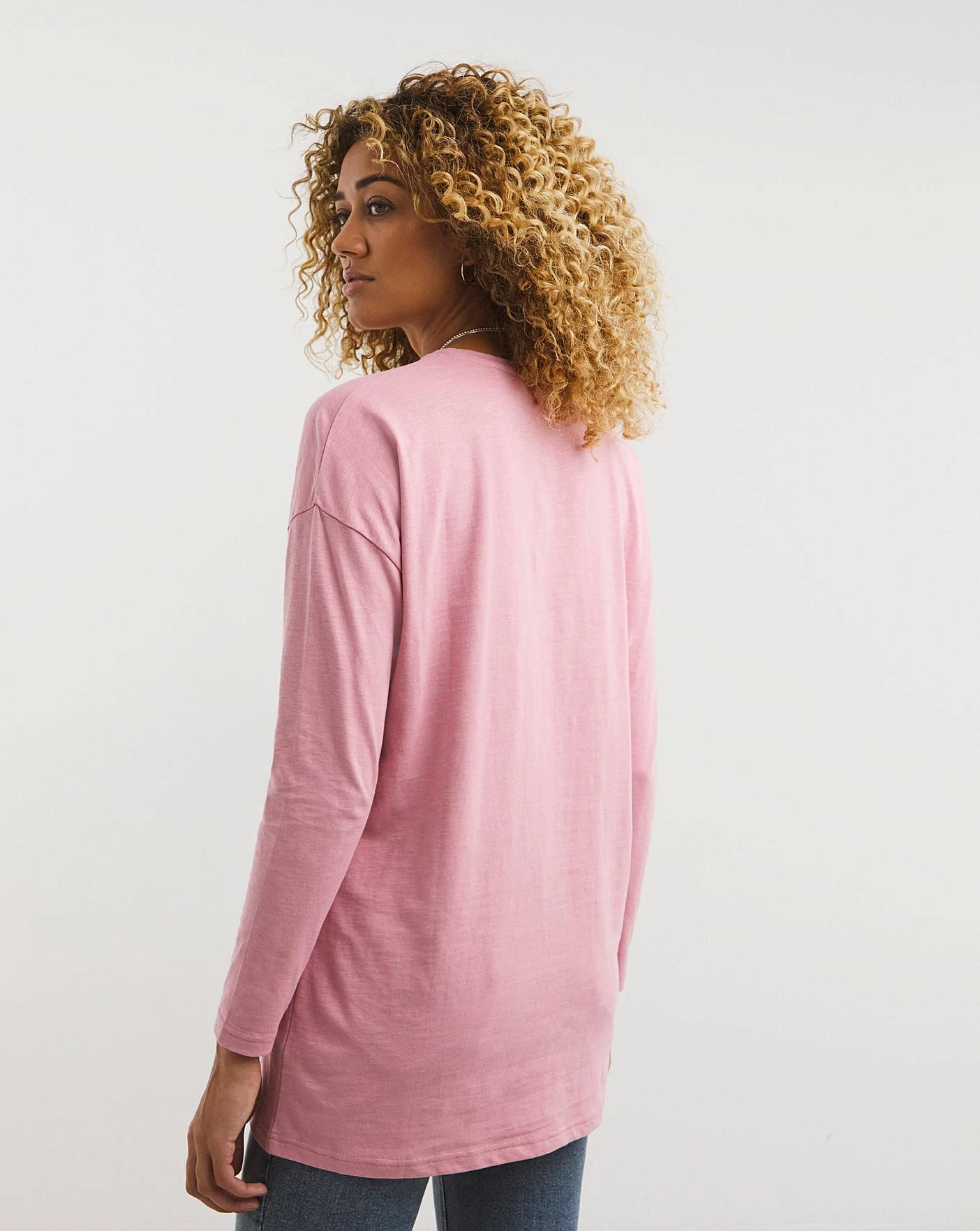 This season, we’ve refreshed our favourite slub pocket t-shirt. Her soft cotton, delicate hue and long sleeves will carry you through the seasons. Style casually with your favourite jeans and trainers.