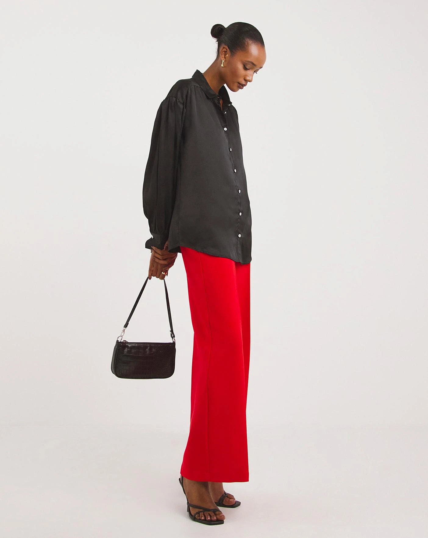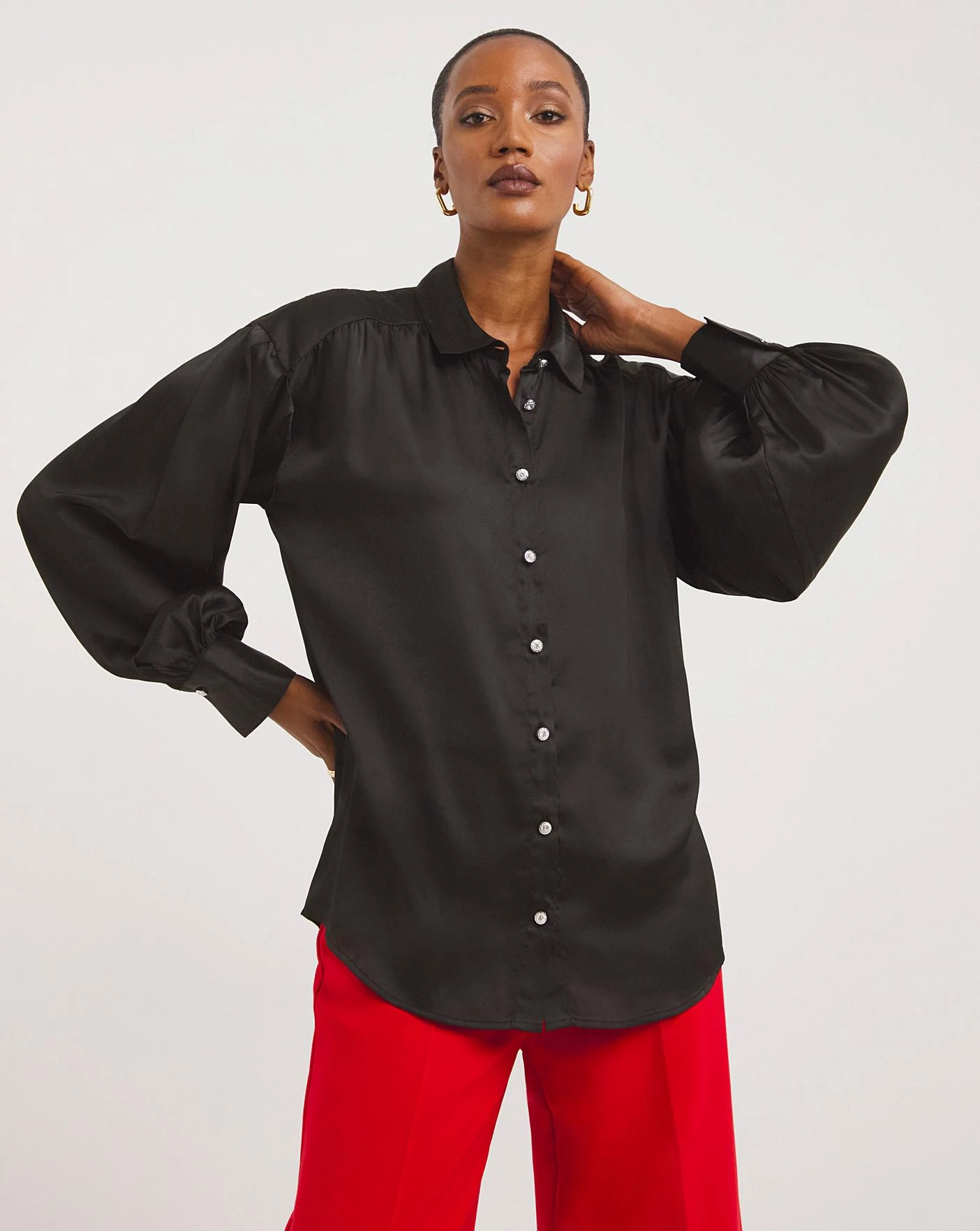 For a great going out look, choose our satin shirt with embellished buttons. To style the shirt, pair with wide leg trousers and heels, adding bold accessories to complete the look. In a relaxed fit, we would recommend sticking to your usual size.