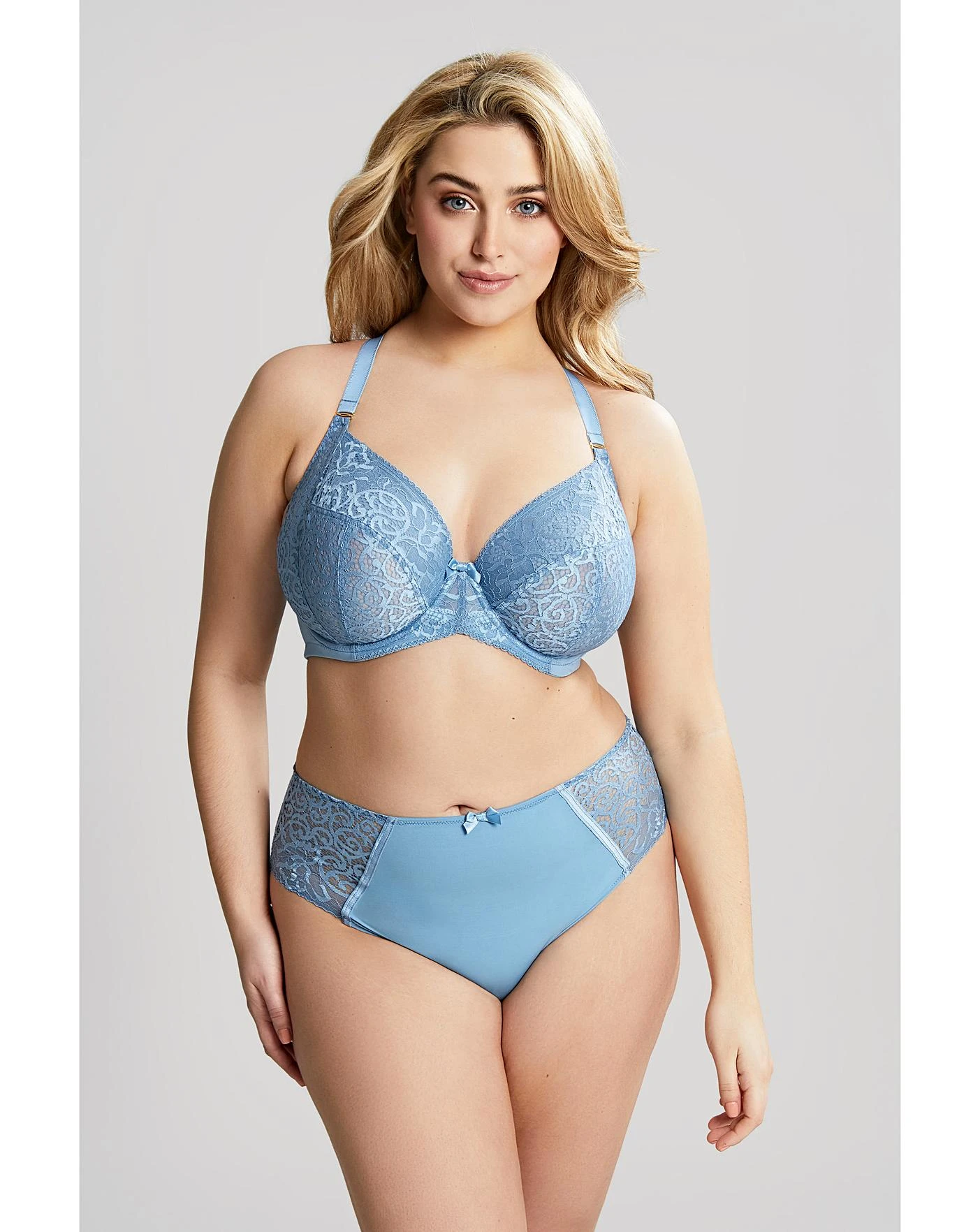 - Deep brief offers a cheekier fit than our Estel high waist. In a smooth microfibre and lace leg detailing – in Dusk Blue