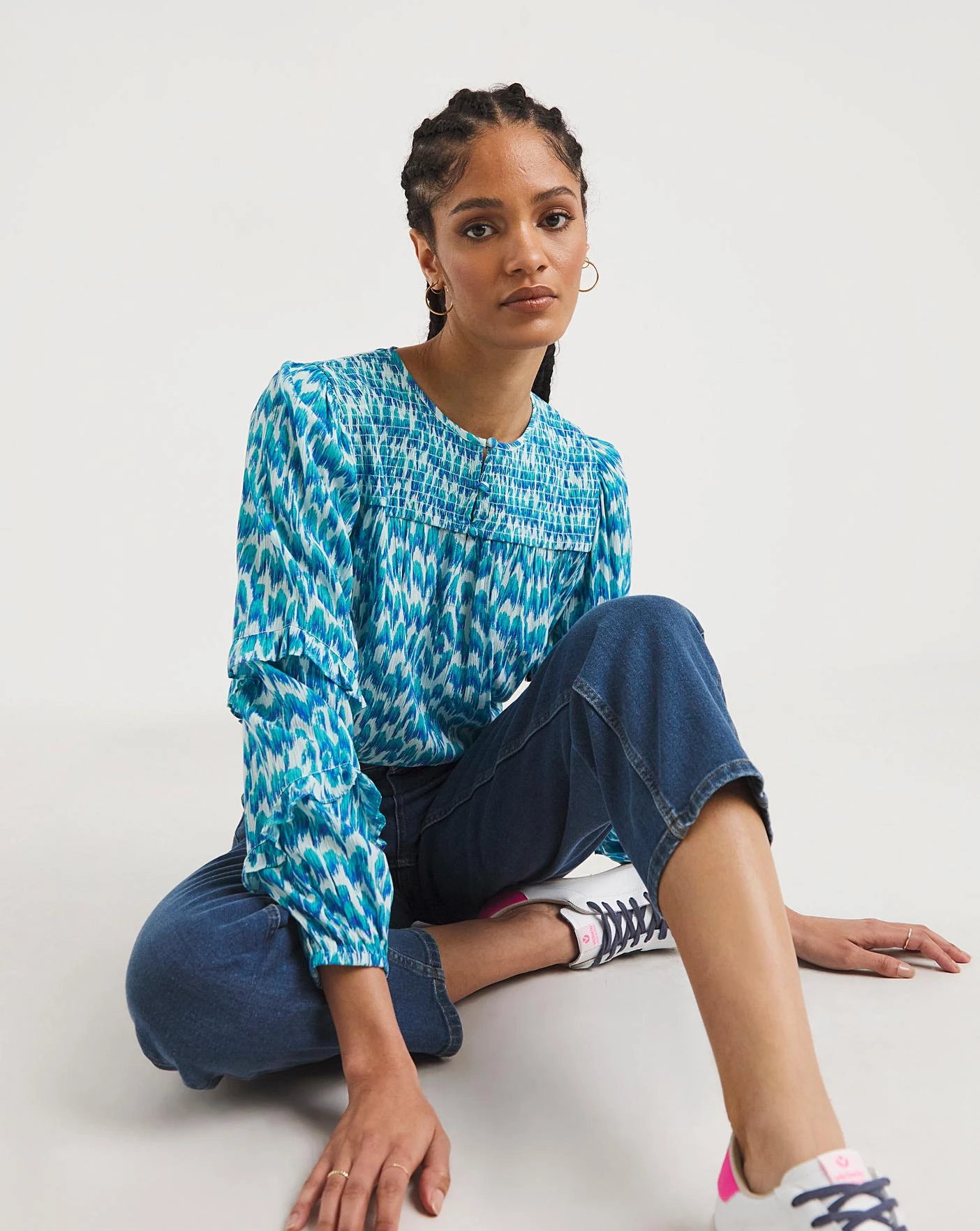 Shirred Yoke Top With Frill Sleeves