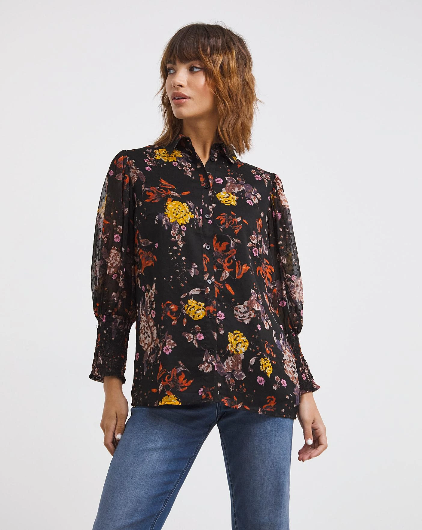 This shirt is a great day time piece, featuring flattering shirred cuffs. Pair this shirt easily with jeans for a casual look, and complete the look with some seasonal boots. Please note that this top comes in a relaxed fit, meaning that you can stick to your usual size.