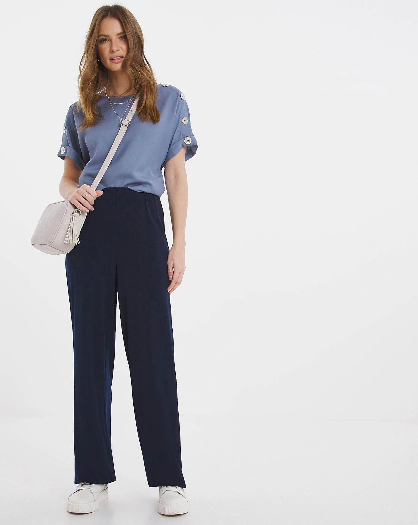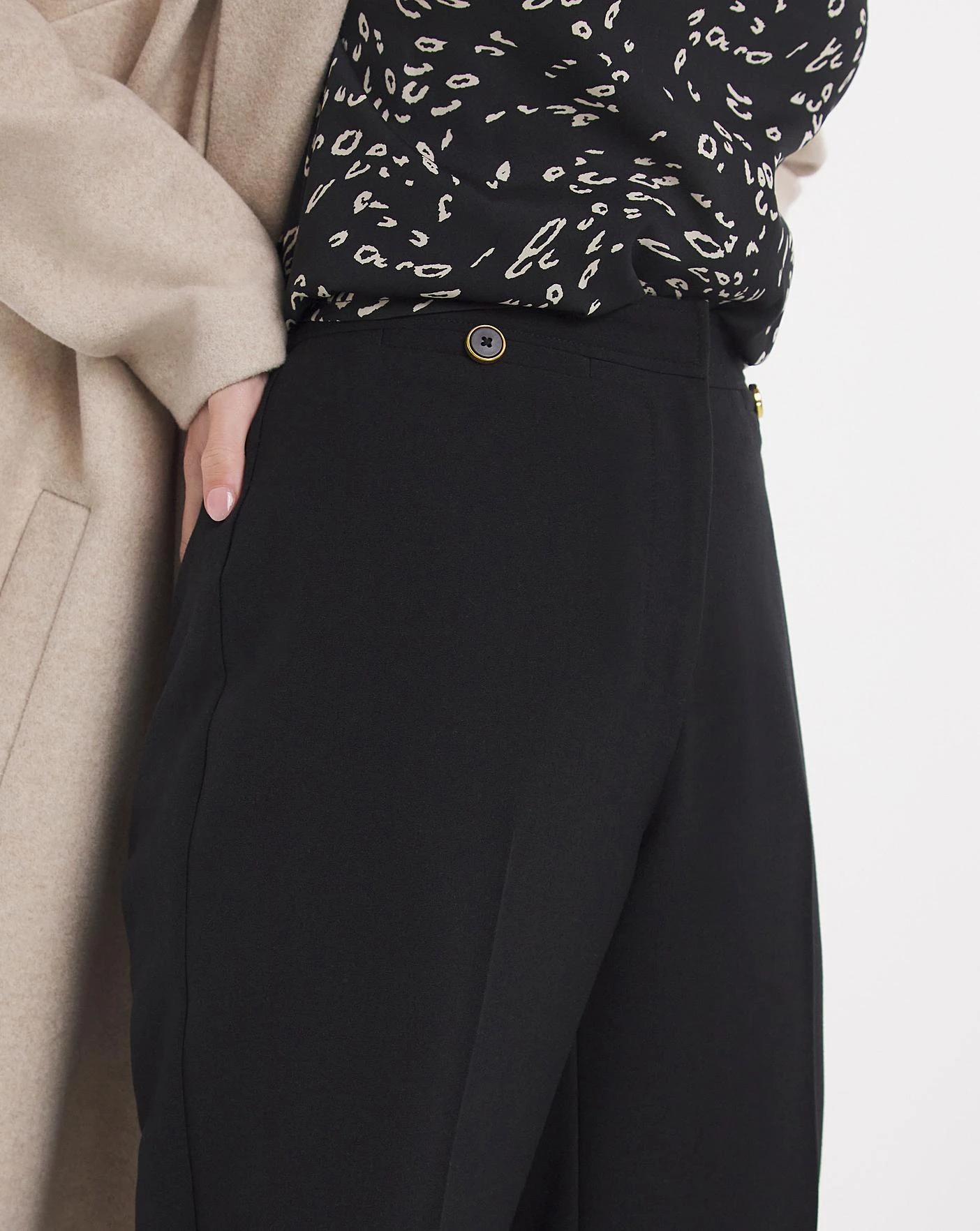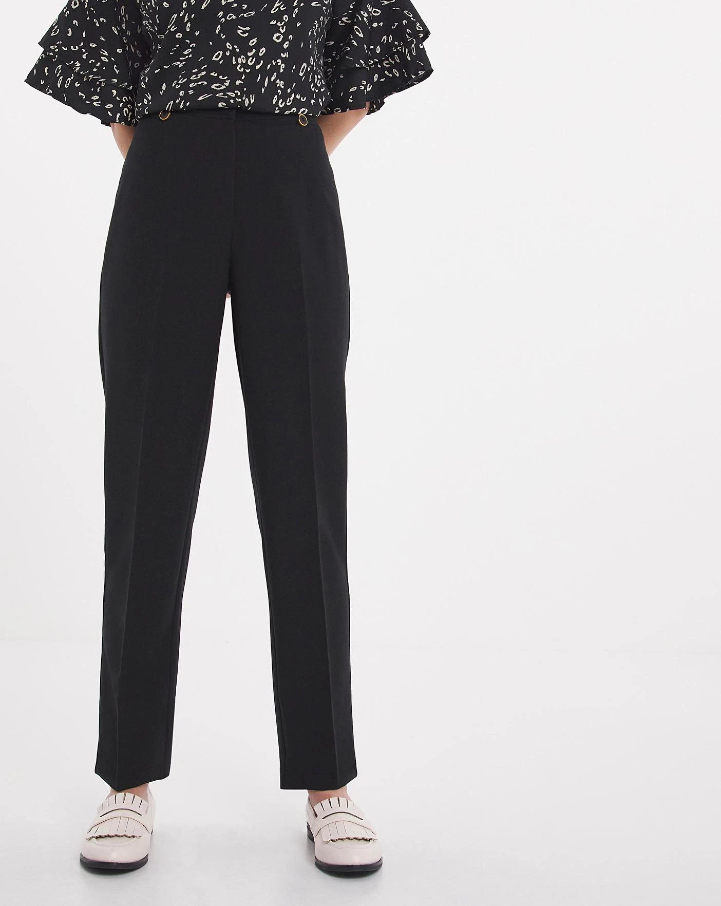 Flattering fly front trousers from Slimma, with zip-and-hook fastening, mock pockets to front, and back waist elastic.