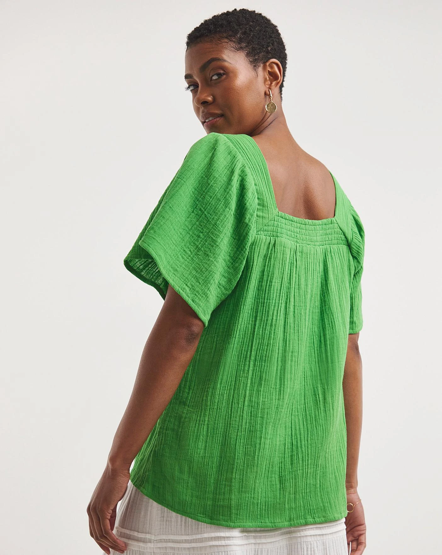 In a soft cotton, this top offers a flattering fit and can be paired easily with jeans or shorts. Complete the look with a pair of sandals or trainers, dependent on the occasion. Our Cheesecloth top offers a relaxed fit.