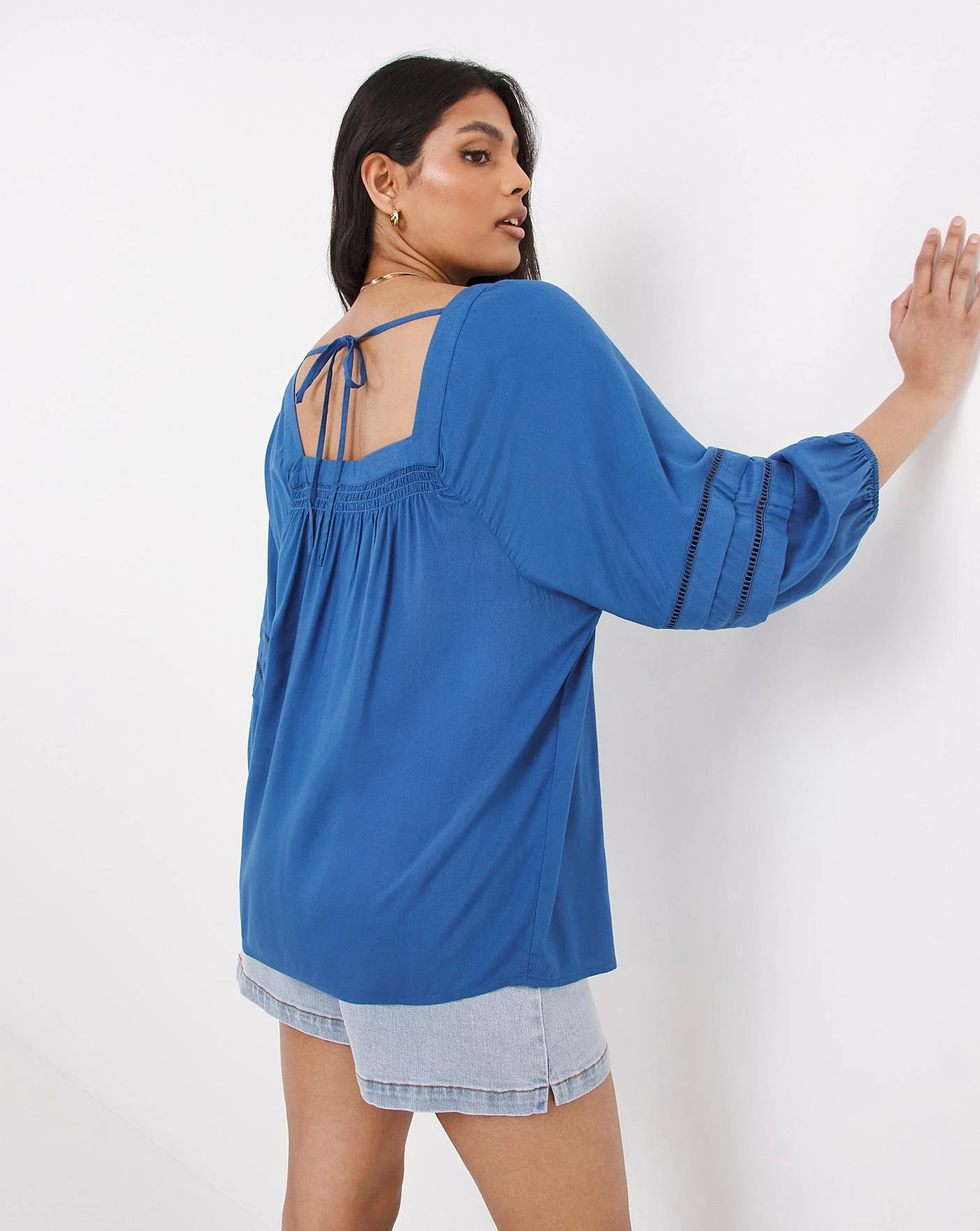 Prepare for the new season with our square neck top featuring a flattering ladder detail. This is the perfect item for your Summer wardrobe and can be paired easily with shorts or jeans. This top comes in a non stretch fabric and offers a relaxed fit.