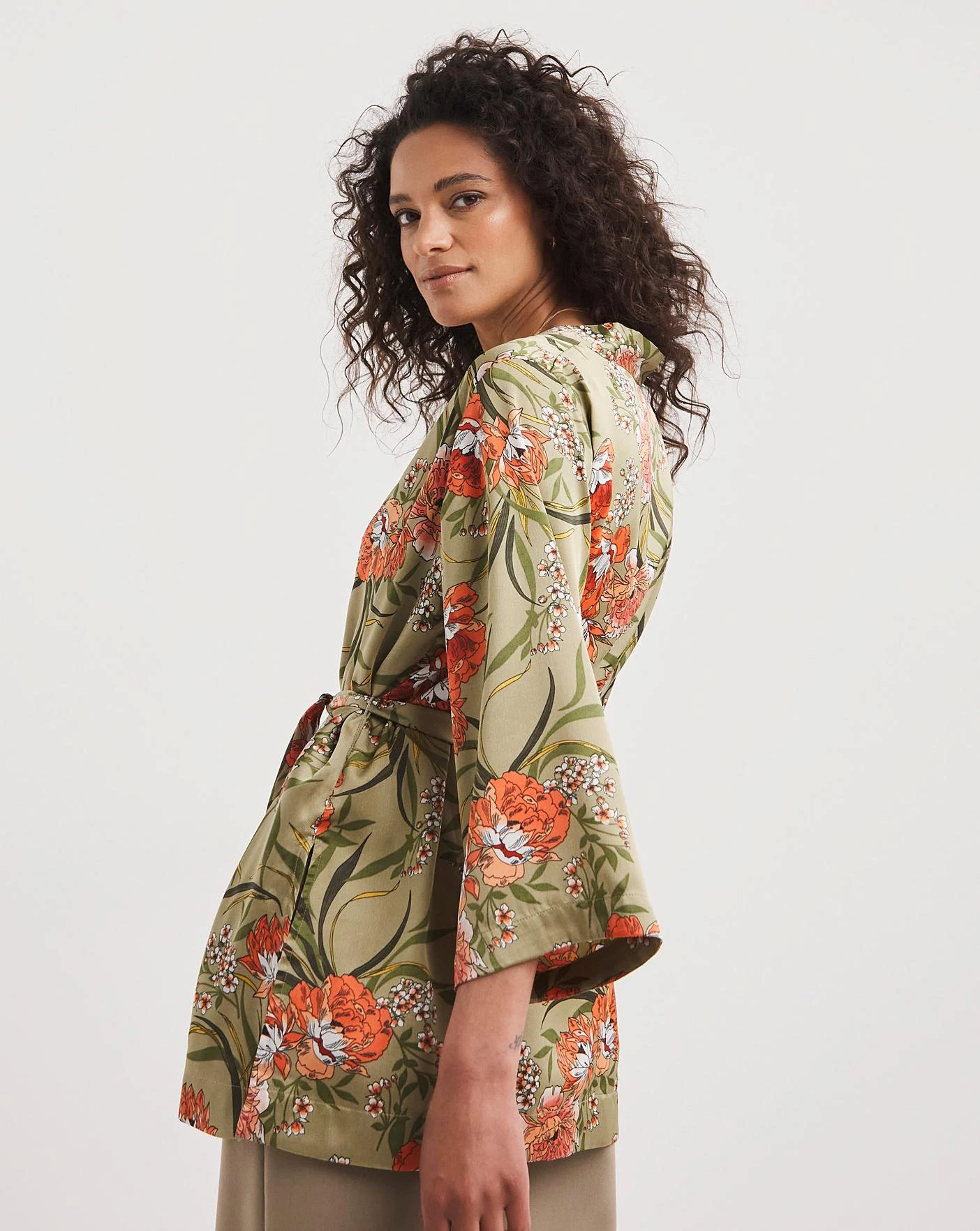 Our satin kimono is a great day time piece that can be transitioned into the evening. Please note that this kimono comes in a relaxed fit and a non-stretch fabric.