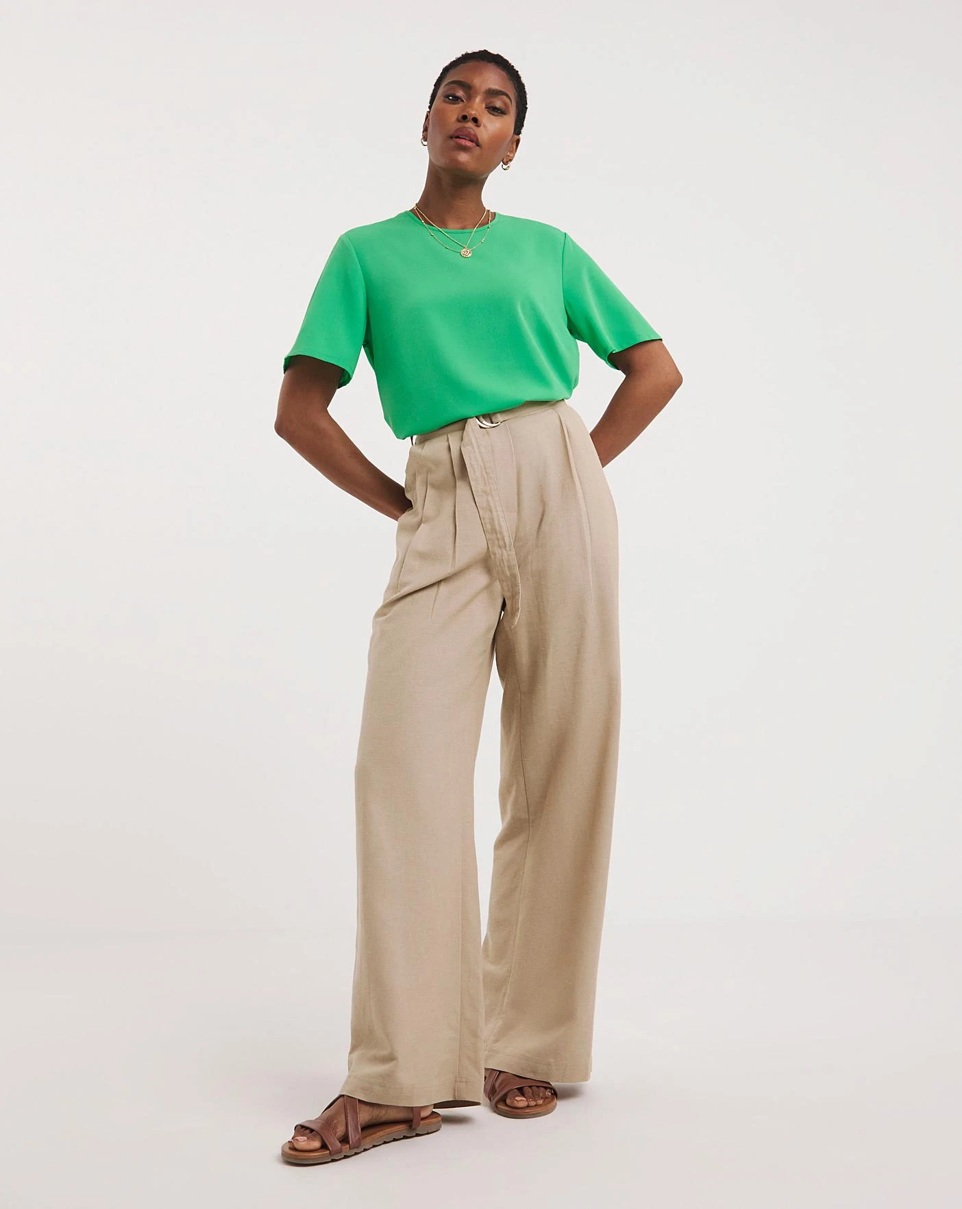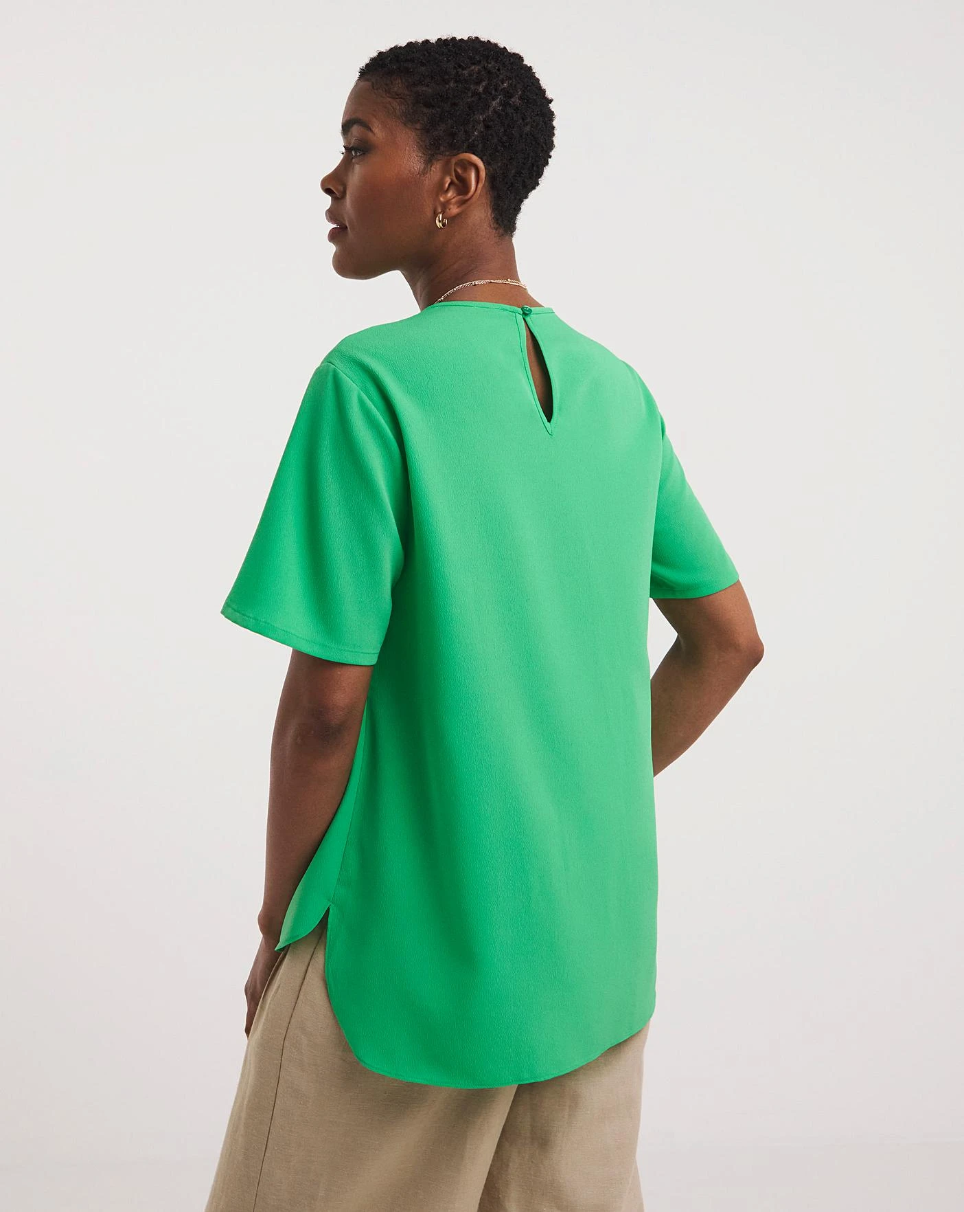 Our short sleeve top is back with a fresh print. To style your outfit, our short sleeve woven tops can be worn over jeans or tucked in for a different look. In 100% non-stetch polyester, this top will feel soft on the skin and the boxy shape allows for a relaxed and comfortable fit.